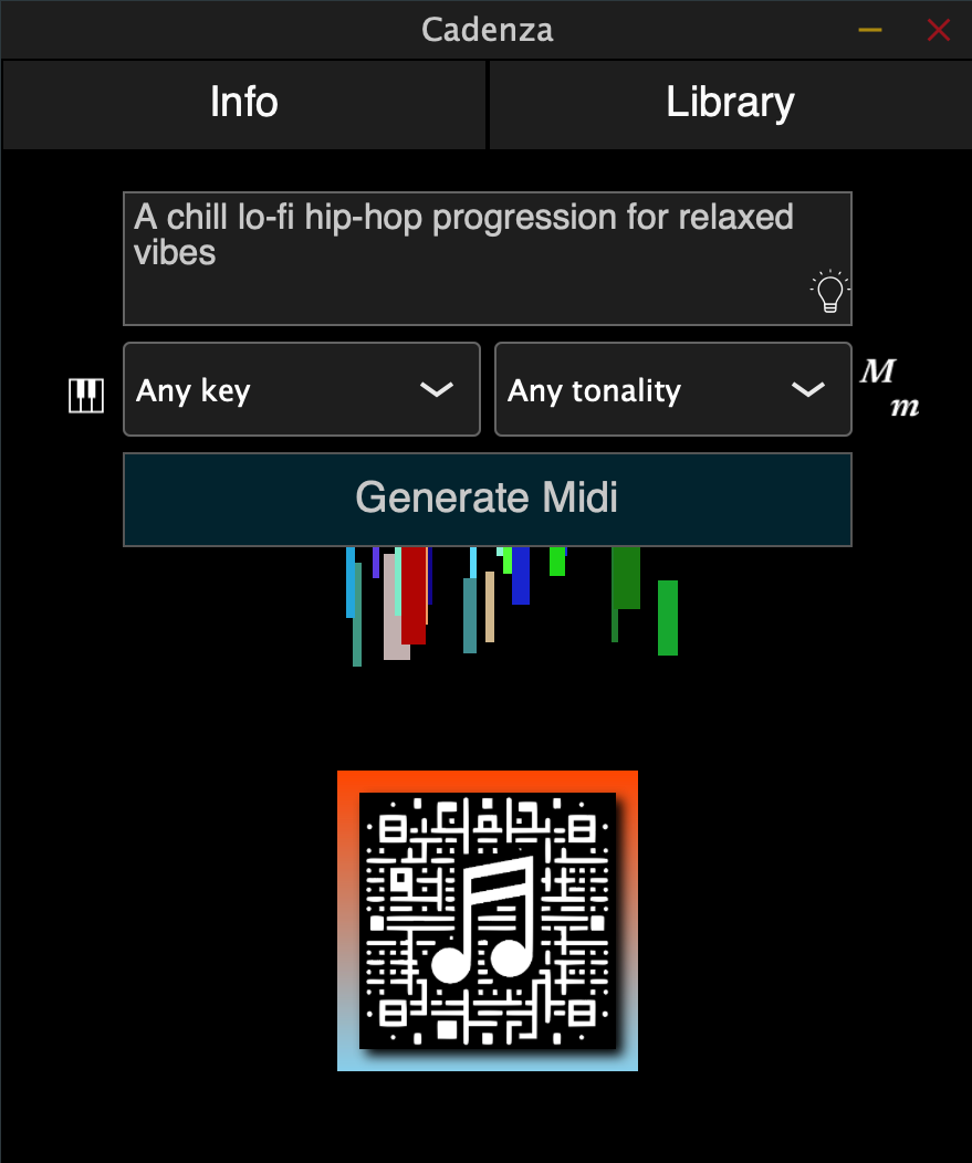 Cadenza is our state-of-the-art midi plugin powered by generative AI. Simply describe what kind of chord progression you want and it will populate the midi file directly into your favorite DAW.
